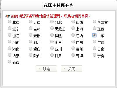 2、點擊右下角,找回備案密碼,選擇你所在地區(qū),這里我舉例的是我們山東省境內(nèi)的網(wǎng)站備案密碼找回: