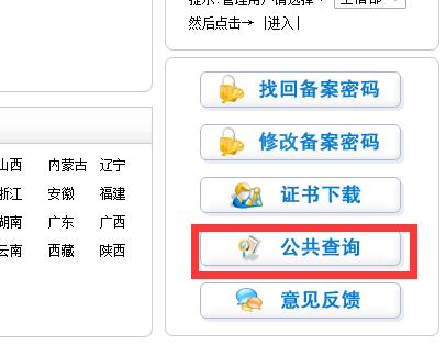 如果不知道備案許可證號,在工信部備案首頁,右下角-公共查詢--輸入公司相關(guān)信息就可以獲取到,找回備案信息